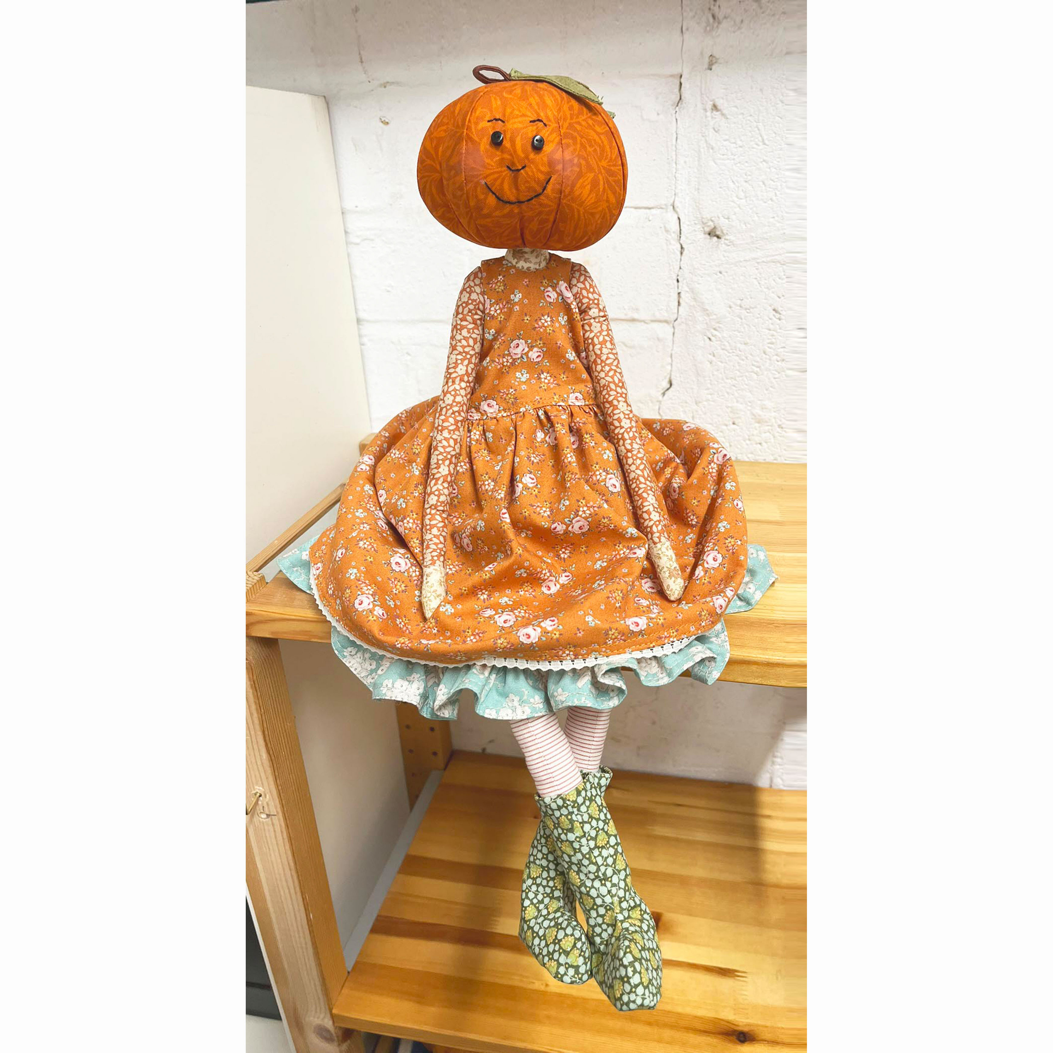 Penny loves to tend her garden, encouraging the pumpkins in her patch to be the best they can be. With her boots on she hops and skips around her pumpkin patch kicking through the autumn leaves and jumping in puddles. Penny Pumpkin Doll makes a great harvest or Halloween decoration but would love to out and about all year round.