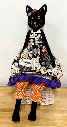 The pattern containts step by step insturctions photos and full sized paper patterns which include seam allowances so you can start making your Kitty Cat Doll right away (no need to re-size the pattern).
