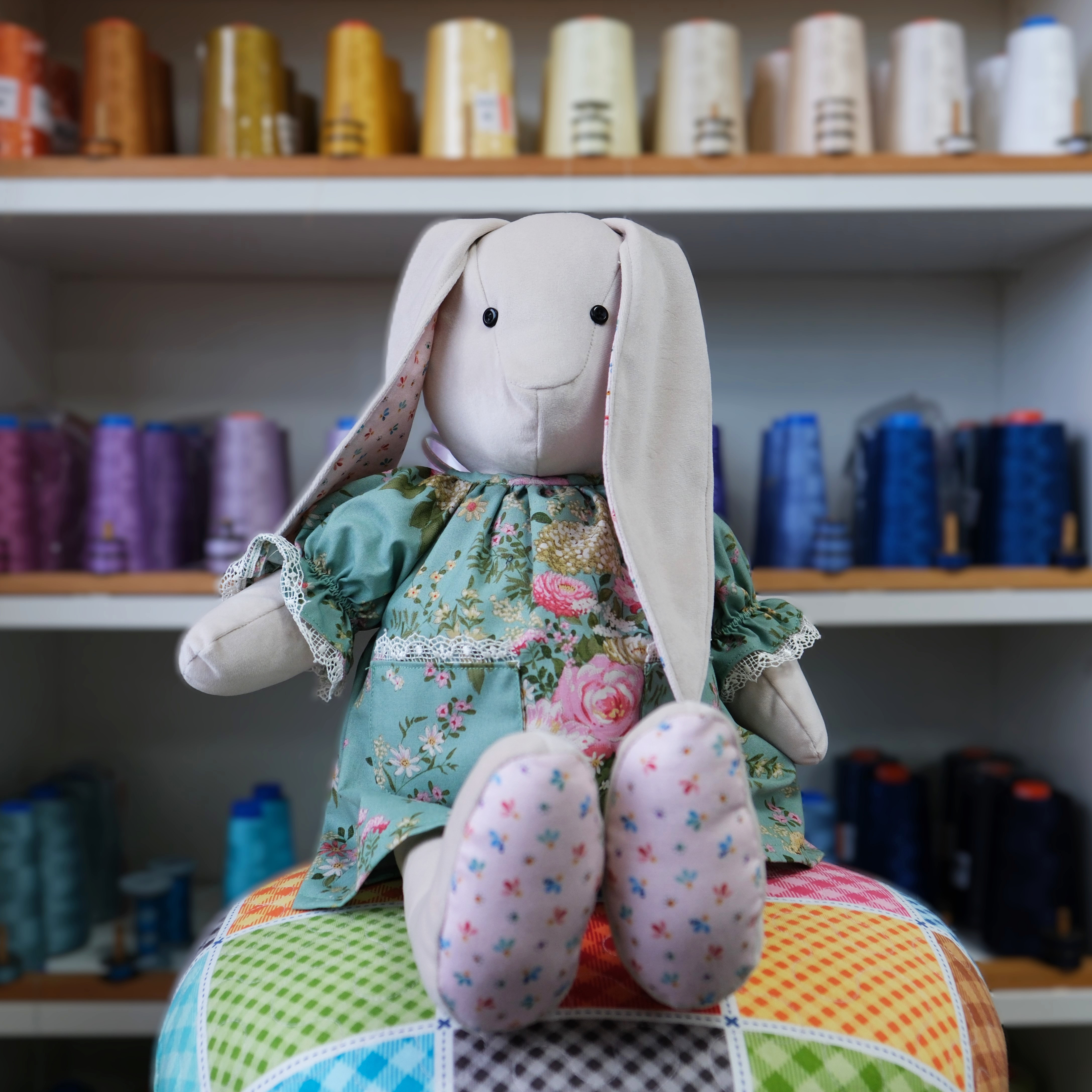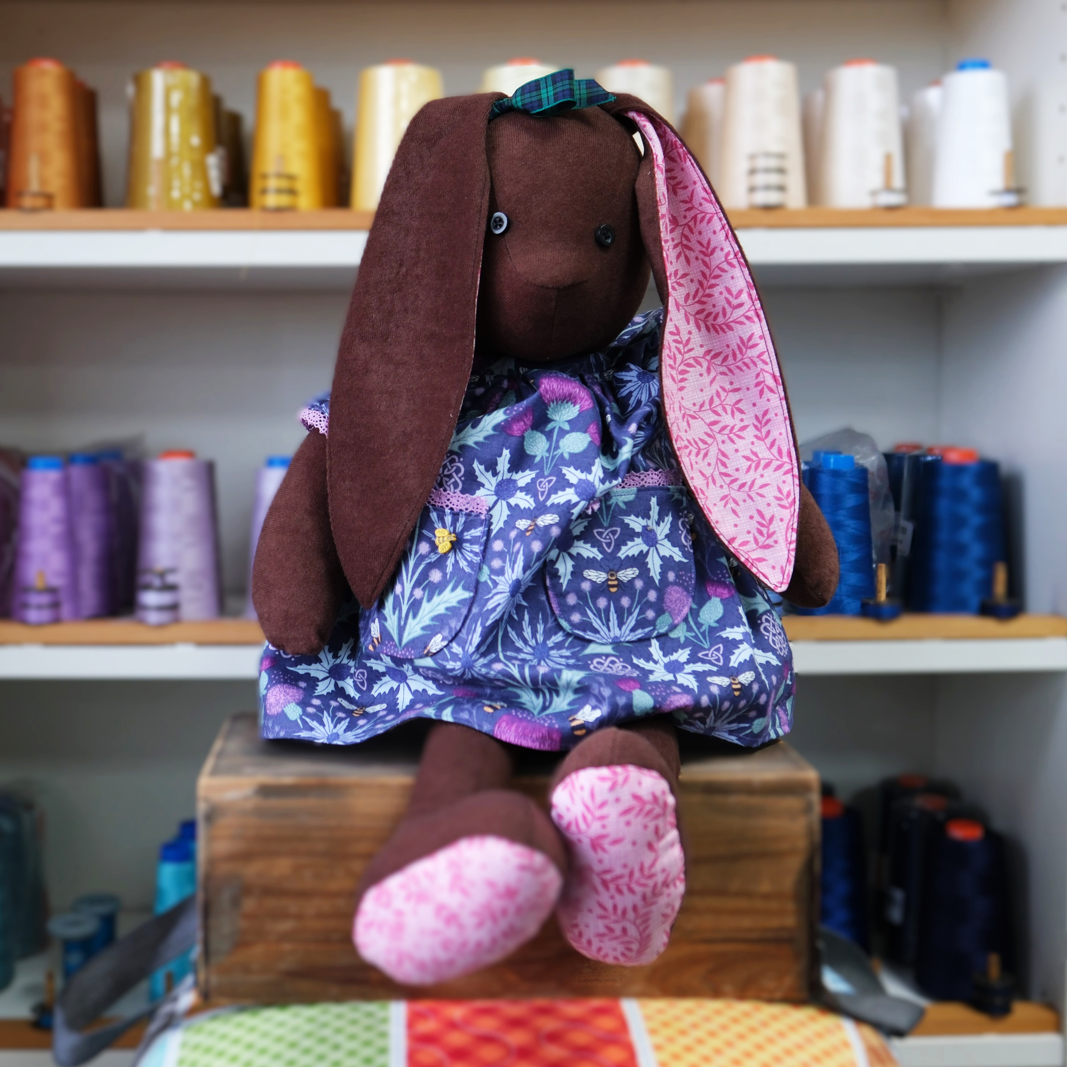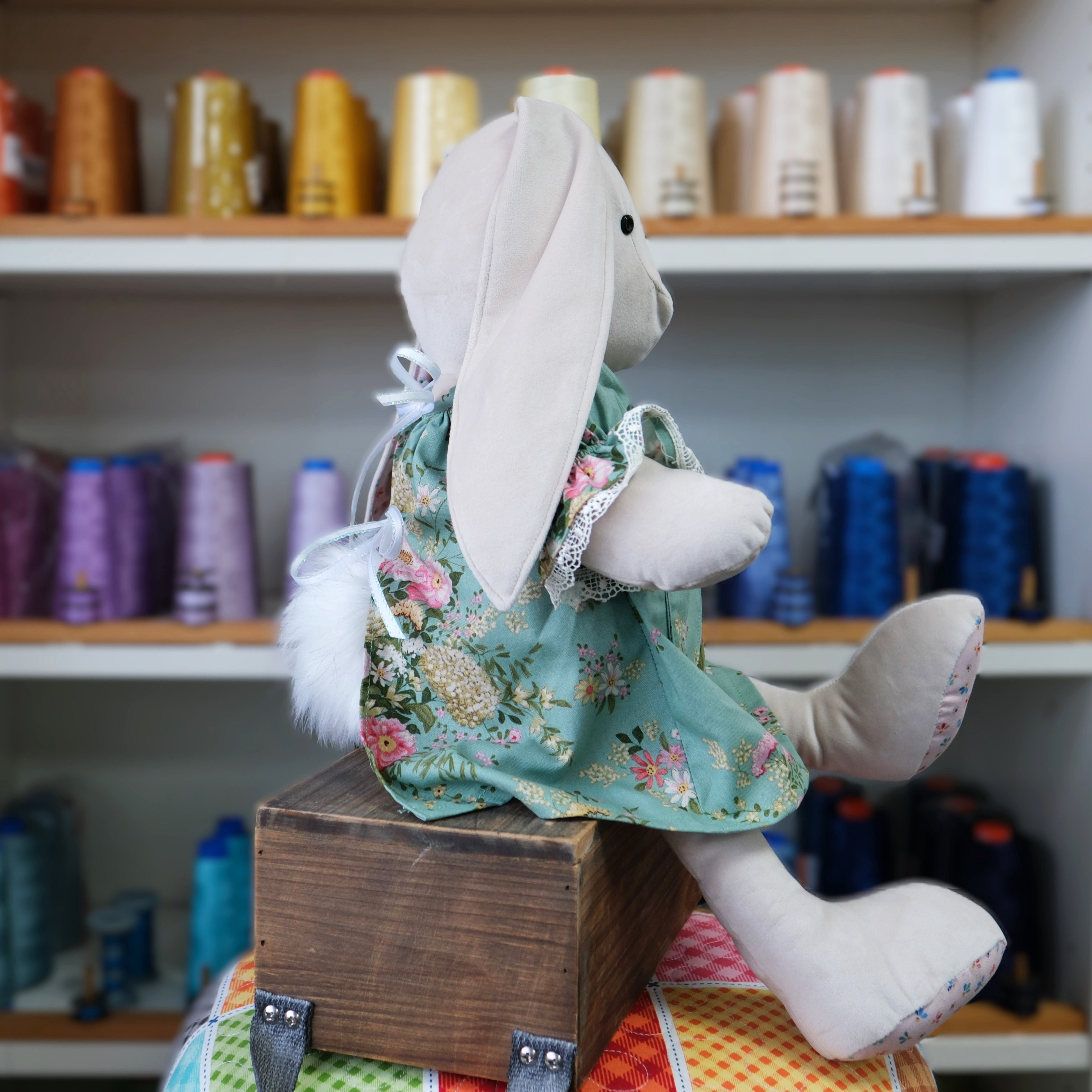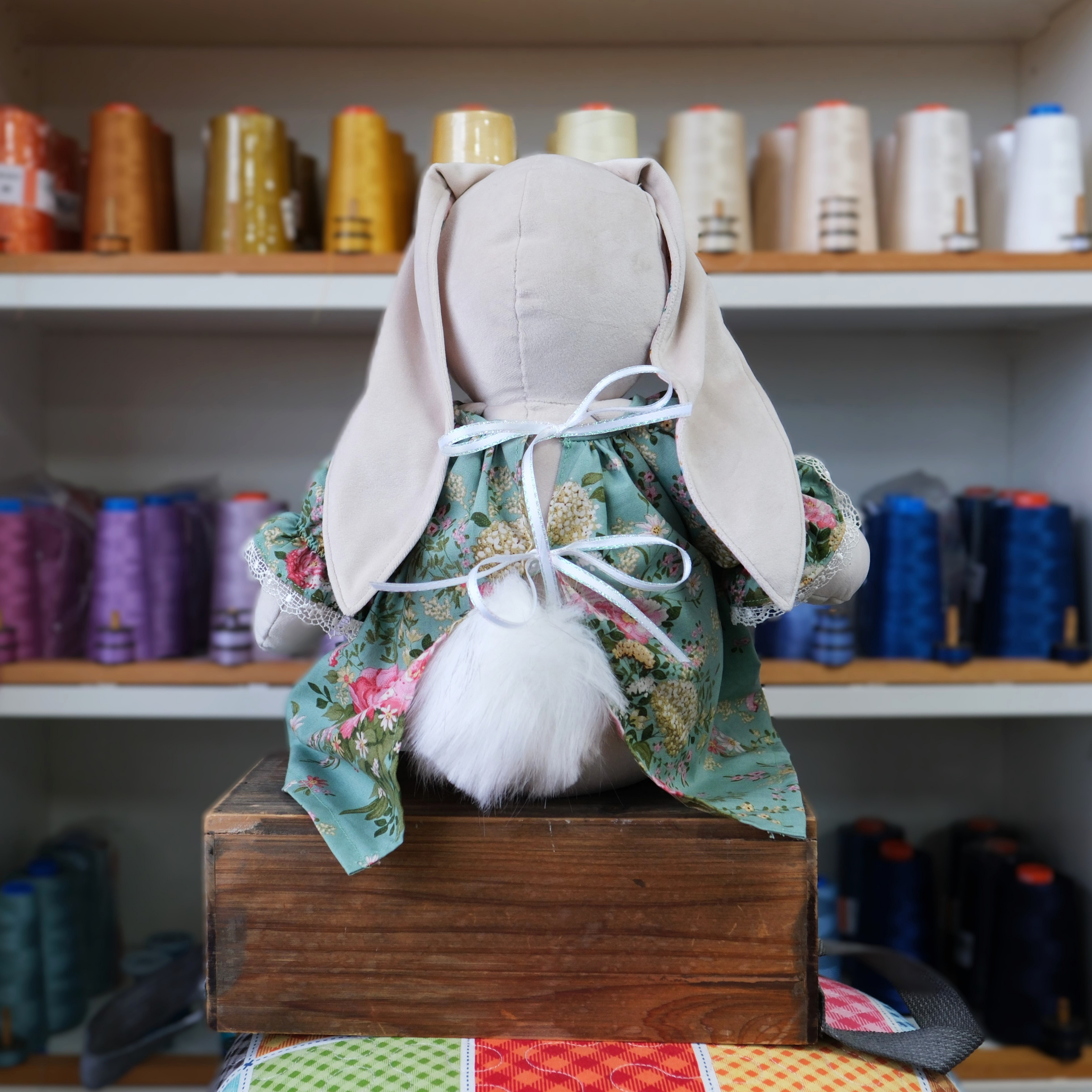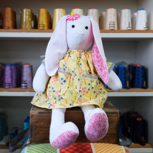 Pattern includes full sized patterns, instructions and diagrams to make the bunny and her dress.