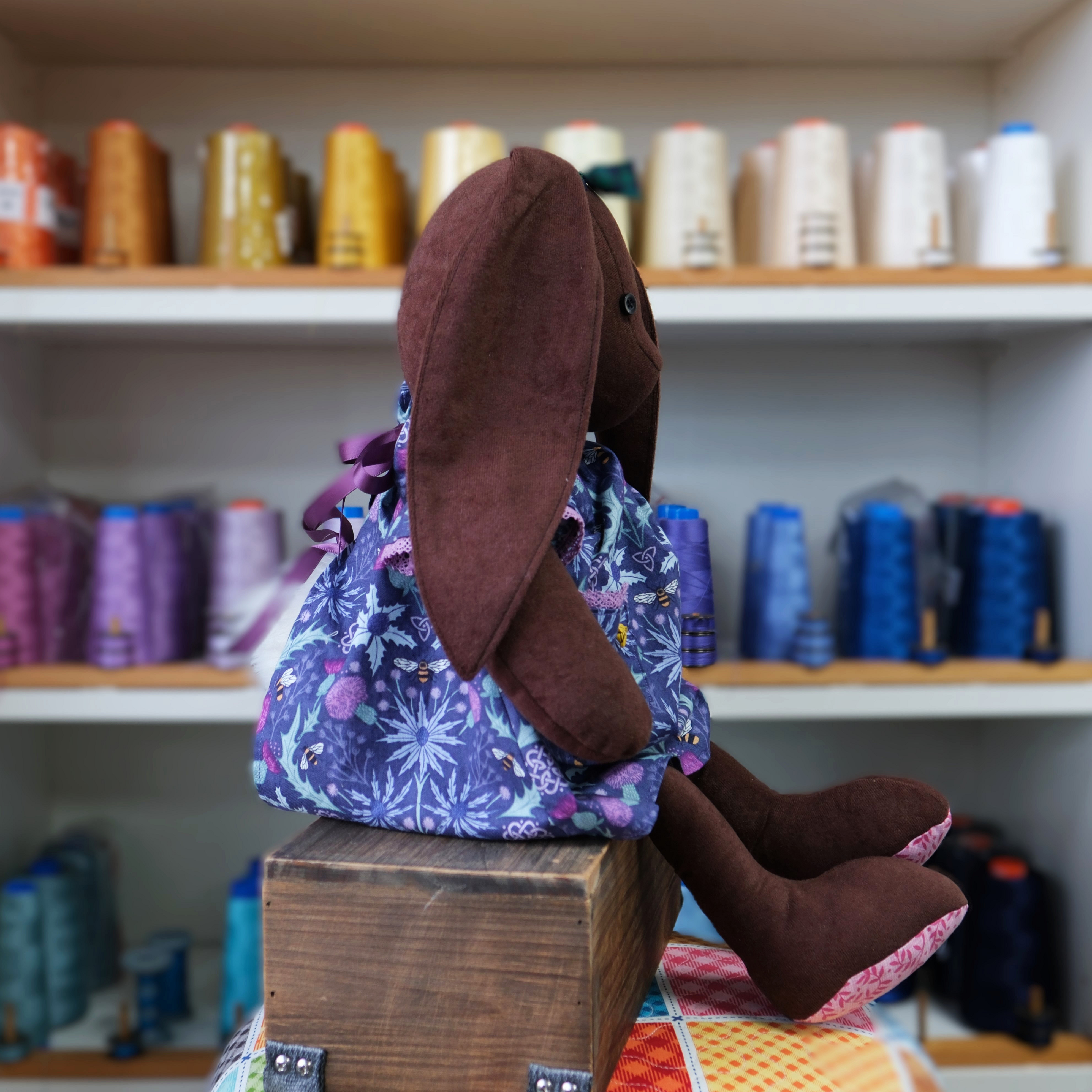 Becky Bunny stands at around 18" tall, but she prefers to sit and is 12" tall when seated.