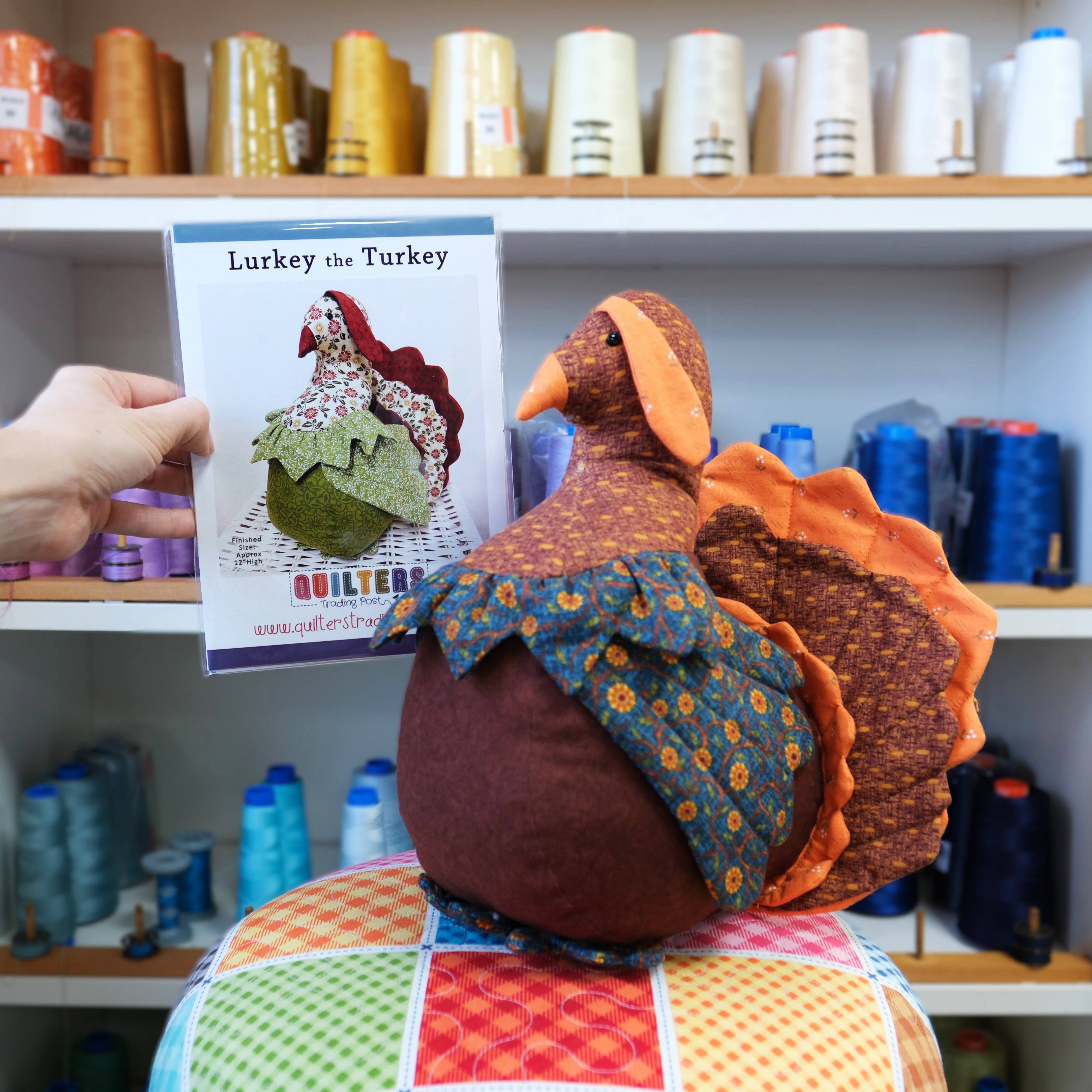 With step by step directions, diagrams and full-sized paper patterns you're ready to start cooking up a meat free turkey right away. Lurkey is made of just 4 fat quarters of fabric.