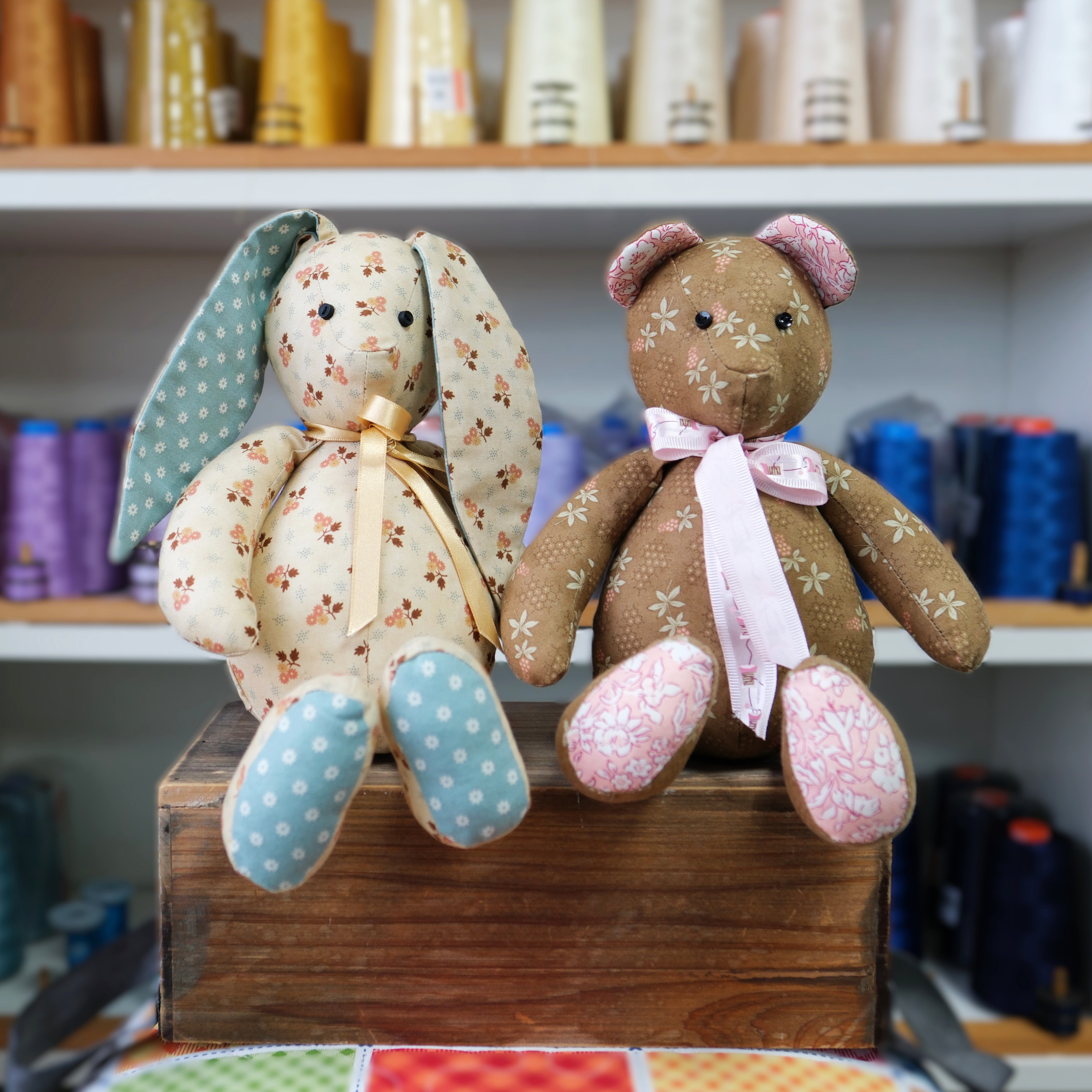 This pattern comes with step by step directions, diagrams and full-sized paper patterns. Make a Bear or Bunny with just 1 fat quarter and 10" of fabric for the ears and feet.